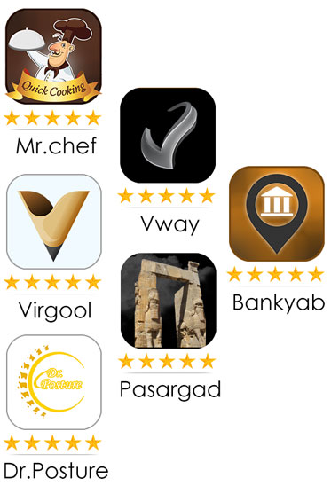 Şirket, çeşitli tarihsel alanlarda (Persepolis Kültürel Miras uygulaması gibi), eğitim (okul virgül benzeri uygulama gibi), ulaşım (Amerika Birleşik Devletleri için Savoy uygulamasına benzer) programlama uygulamaları (Android, IOS) ile gurur duymaktadır. SNAP), mağaza ve hizmetler (merkez bankası bilgileri ile Bank Yab uygulaması gibi) vb. Özel animasyonlar ve efektler ile birlikte veri önbelleği ile çok dilli ve yüksek hızlı uygulamaların yanı sıra 0'dan 100'e kadar, tasarımdan yürütmeye ve platformlarda yayına kadar uygulama üretiminin tüm aşamaları aynı koleksiyonda yapılır.